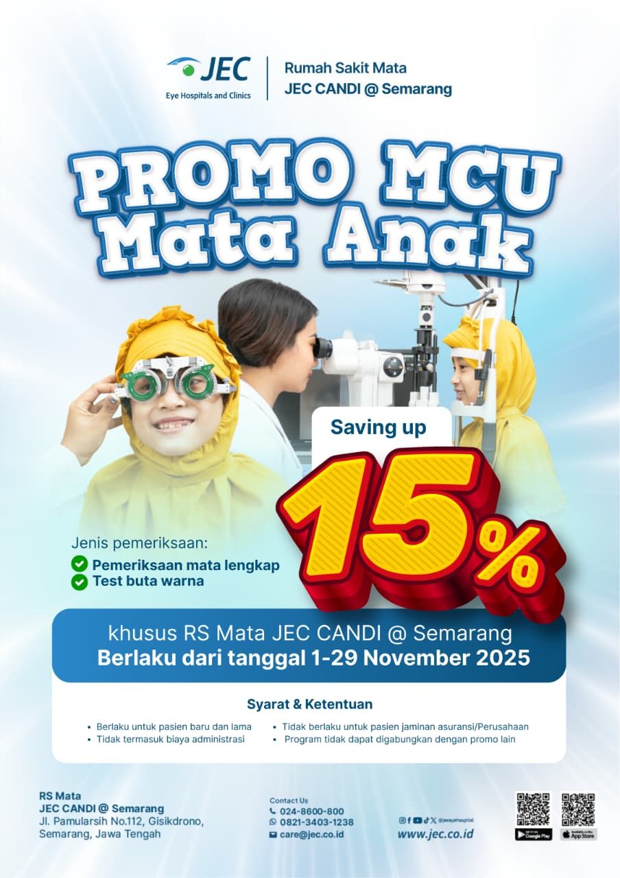 Dapatkan diskon hingga 15% untuk pemeriksaan mata lengkap dan tes buta warna.Promo berlaku 𝟭–𝟮𝟵 𝗡𝗼𝘃𝗲𝗺𝗯𝗲𝗿 𝟮𝟬𝟮𝟱.