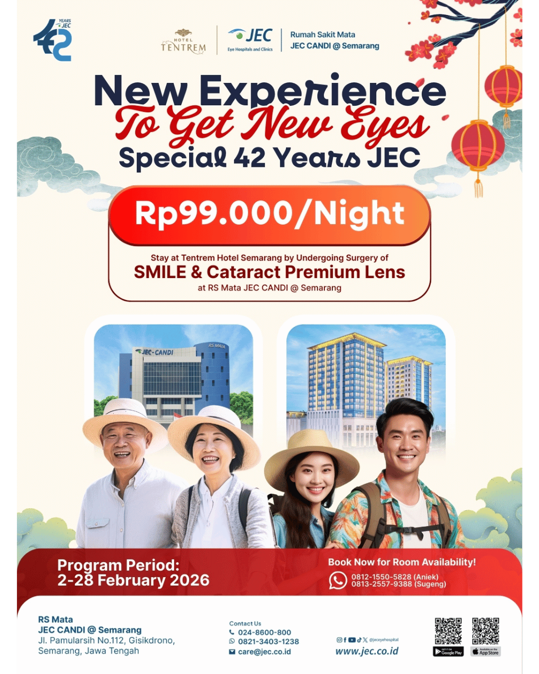 Dalam rangka merayakan HUT ke-42 JEC, kami menghadirkan kolaborasi eksklusif untuk kenyamanan pemulihan mata Anda. Dapatkan pengalaman perawatan mata terbaik sekaligus akses menginap premium dengan harga yang sangat spesial.