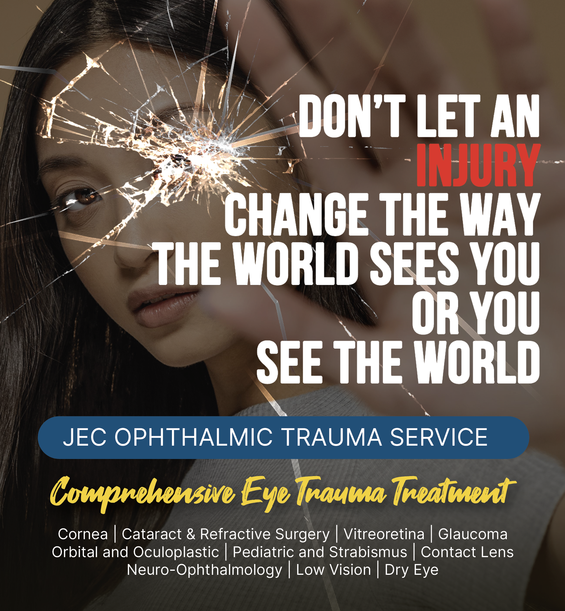 JEC menangani berbagai kondisi gawat darurat pada mata, mulai dari cedera tumpul yang dapat menyebabkan pembengkakan atau perdarahan internal, benda asing yang masuk ke permukaan atau bagian dalam mata, hingga luka tembus yang berisiko merusak struktur penglihatan secara permanen. Seluruh penanganan dilakukan oleh dokter spesialis mata yang berpengalaman, sehingga pasien bisa mendapatkan perawatan cepat, tepat, dan aman. Kepercayaan pada tim ahli kami adalah langkah terbaik untuk menjaga fungsi penglihatan saat situasi darurat terjadi.
